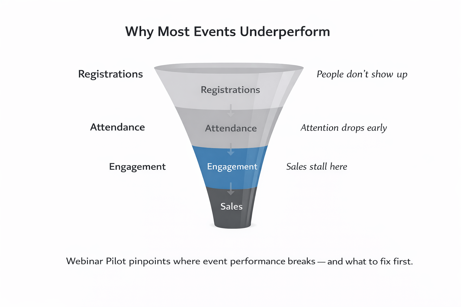 Most events don’t fail because of traffic — they fail because attendance and conversion break down.